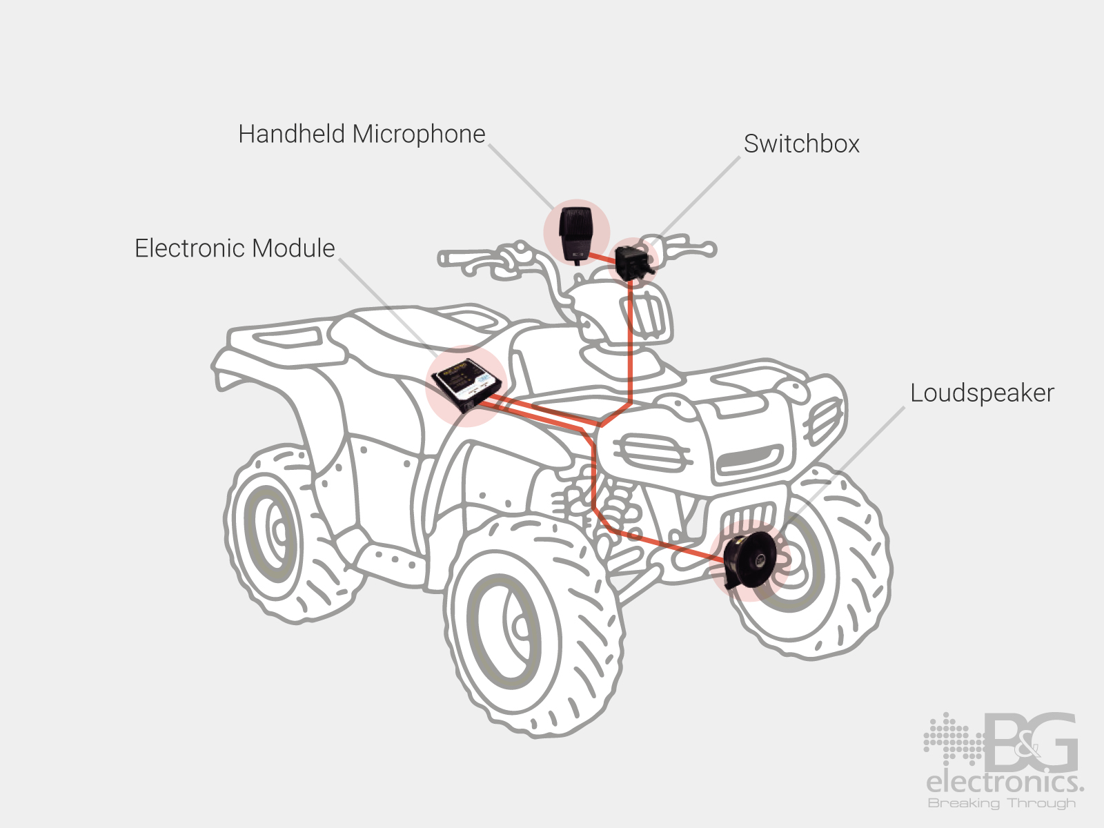 System of sirens, third-generation LED lights and Hand Microphone for use on official motorcycles.