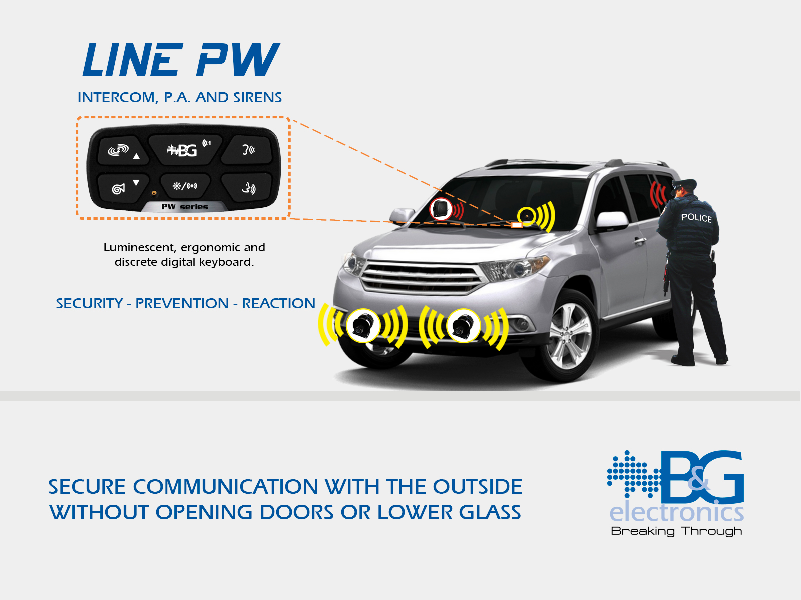 • 4 Selectable continuous sirens (PHASER, YELP, WAIL, Hi-Lo)