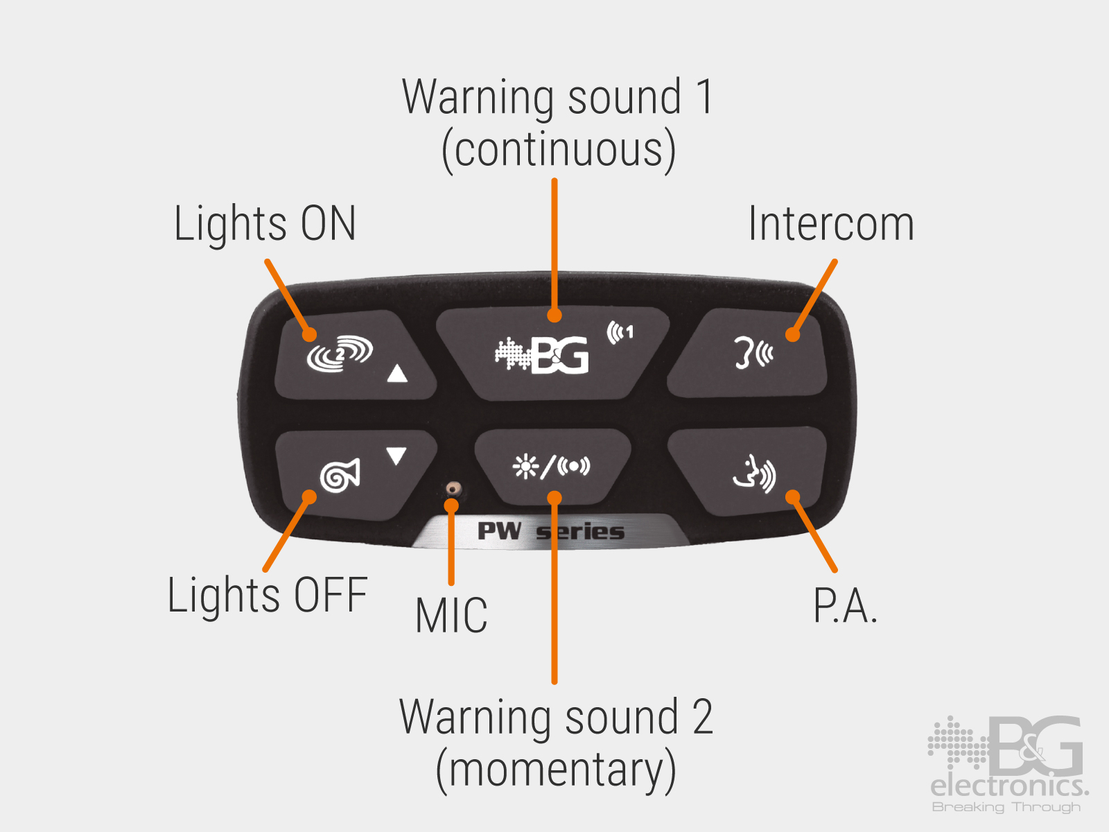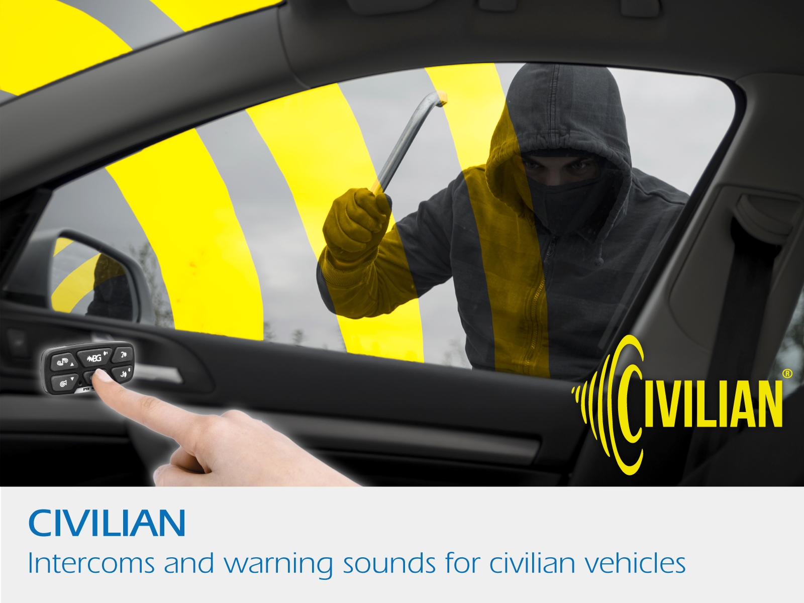 Intercom system with P.A. and warning sounds. The technology used in armored vehicles applied to civilian vehicles.
